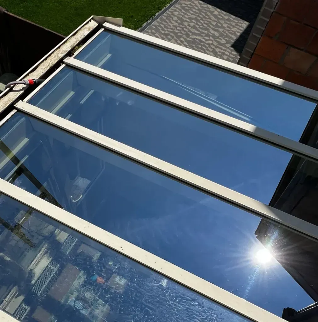 Naast ramen reinigen we ook veranda’s, serres, zonnepanelen en dakgoten.